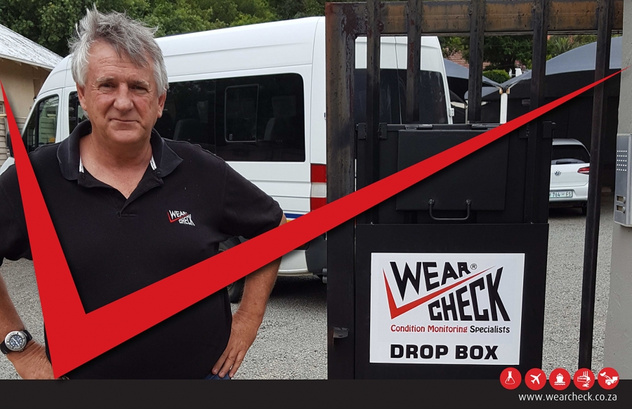 Pictured here is WearCheck consultant Don Geyer next to the sample drop box in Bloemfontein